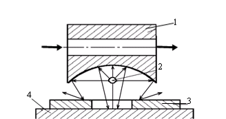 В процессах пайки широкое применение получили два вида ИК-нагрева: локальный сфокусированный и прецизионный рассеянный. Для локального нагрева целесообразны отражатели эллиптической формы, фокусирующие излучение источника, помещенного в ближнем фокусе рефлектора, на объект нагрева в дальнем фокусе (рис. 4, а). Для прецизионного нагрева используют параболические (рис. 4, б) либо овально-цилиндрические с сопловыми насадками рефлекторы (рис. 4, в).