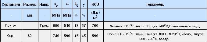 Механические свойства при Т=20oС материала 15Х12ВНМФ