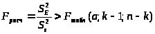 | рассчетным числом Фишера Fp и табличным F0,95 является наибольшим | ||||||||||||||