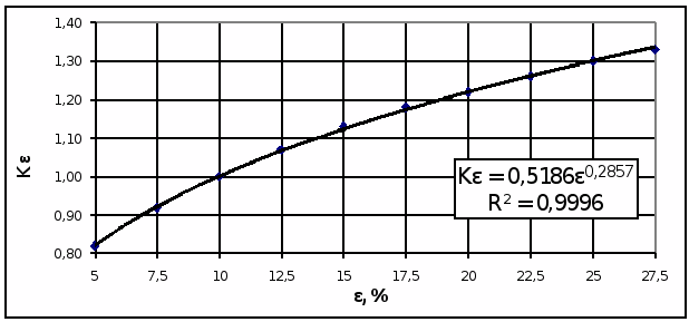 | Kε = 0,5186*ε0,2857, так как для данной аппроксимации различие между | ||||||||||||||