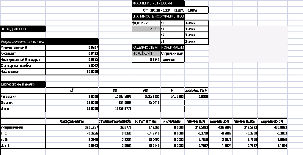 | уравнение регрессии | R2 | k | Fp | F0,95 | ||||||||||