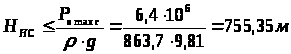 Pдоп – допустимое давление ПС из условия прочности корпуса насоса или допустимое давление запорной арматуры Pдоп= 6,4 МПа.