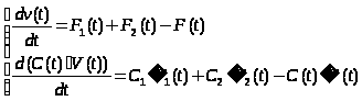 При зміні витрат у системі відбувається накопичення речовини і перехід до нового встановленого стану. Цей перехідний процес описується диференціальними рівняннями