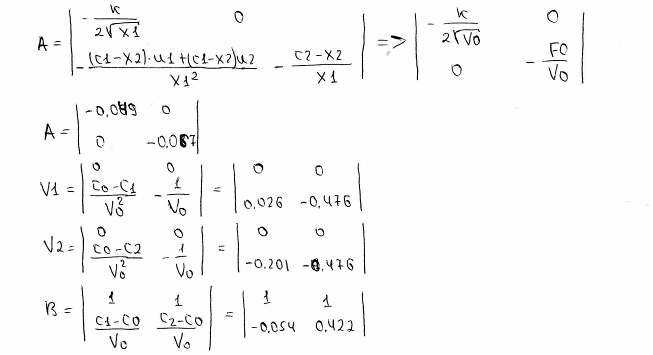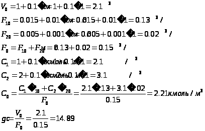C>1>,C>2>,C - концентрація на витоці і притоці системи, кмоль/м3;