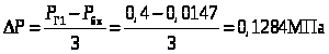 P>Г3> = P>Г2> – ∆P = 0,2716 – 0,1284 = 0,1432 МПа