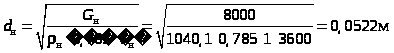 Диаметр штуцеров определим из основного уравнения расхода: