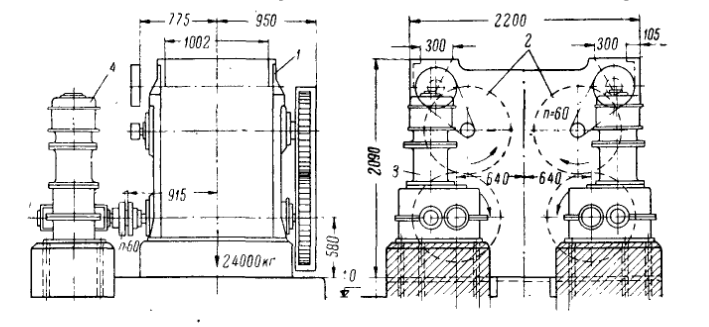 Рис. 1 Двухпарная плющильная вальцовка