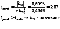 Оценка значимости коэффициентов регрессии проверяется с помощью t-критерия Стьюдента. Из таблицы t-распределения по величине fy для уровня значимости q = 5 % берется табличное значение, tтабл = 2,02. Для каждого коэффициента регрессии bi вычисляется расчетное t-отношение: