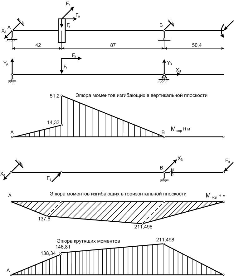 2.10.2 Эпюра моментов изгибающих в вертикальной плоскости
