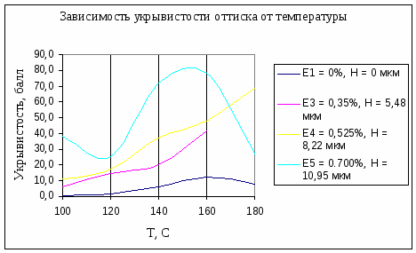 Рис. 4.13. График зависимости укрывистости оттиска от температуры