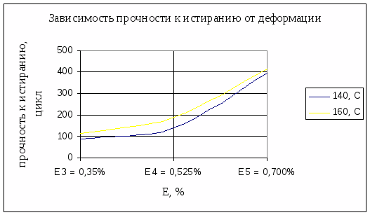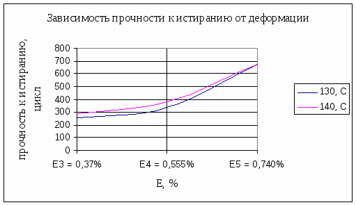 Рис. 4.14. График зависимости прочности к истиранию от деформации