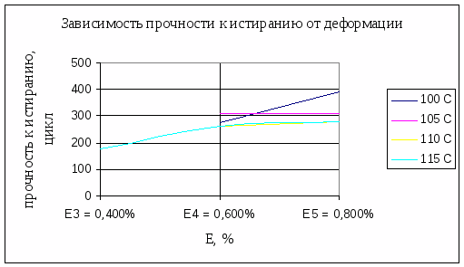 Рис. 4.8. График зависимости прочности к истиранию от деформации
