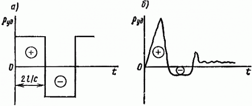 Теоретически понижение имеет то же значение, но с обратным знаком – Р>уд> (рис. 2а). Время прохождения и прямой, и обратной волнами расстояния l будет равно l/с.
