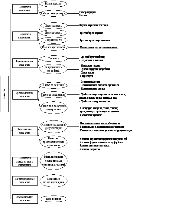 В результате определения показателей качества часов, были представлены те показатели, которые непосредственно характеризуют его в большей степени, но для данного объекта экологические показатели и показатели экономичности рассматриваться не будут, потому что для данной продукции они незначительны, т.е. занимают очень малую степень важности, и в результате мы их исключили.