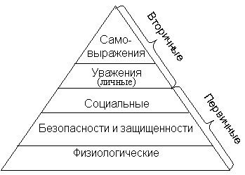 Теория иерархии потребностей Абрахама Маслоу, называемой «пирамидой» или «лестницей» Маслоу, является фундаментальной теорией, признанной специалистами по менеджменту во всем мире. В своей теории Маслоу разделил потребности человека на пять основных уровней по иерархическому принципу, который означает, что человек при удовлетворении своих потребностей движется как по лестнице, переходя от низкого уровня к более высокому. В основании лежит блок физиологических потребностей, далее идут блоки: безопасности, потребности принадлежности и причастности, потребность в признании и самоутверждении. На вершине пирамиды стоит потребность в самовыражении.