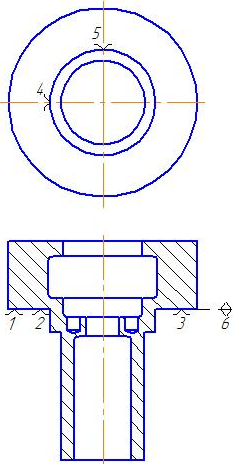 Точки 4, 5 располагаются на внешней цилиндрической поверхности (лишает 2-х степеней свободы: перемещения вдоль двух осей)