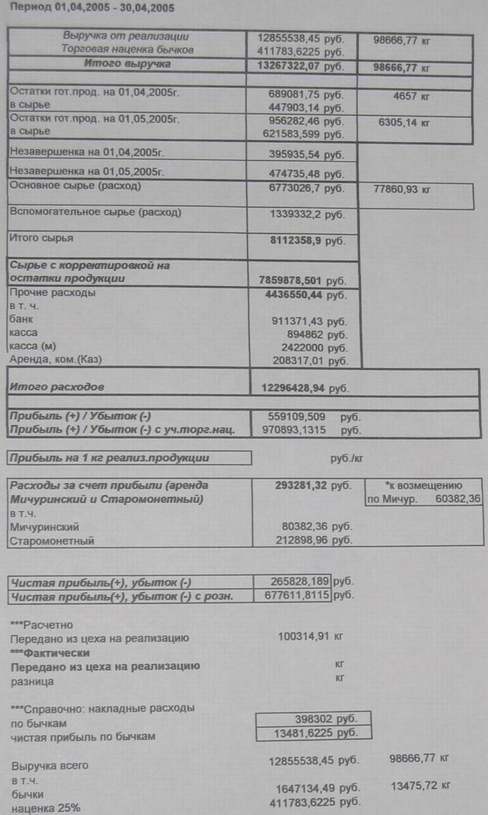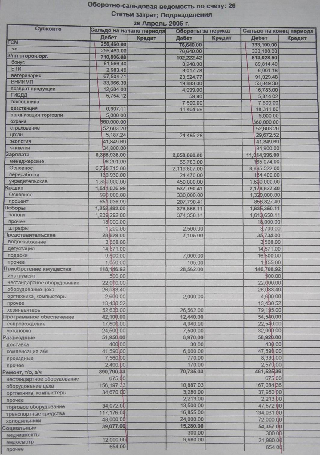 Бухгалтерские отчеты ЗАО «Браво» (апрель, 2005 год)