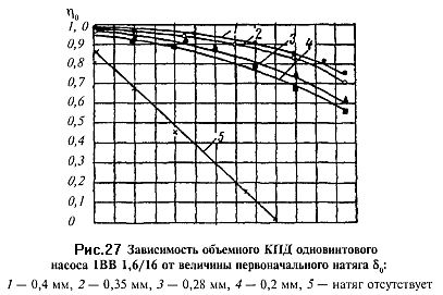 На рис. 27 показана зависимость объемных потерь насоса 1ВВ, 1,6/16 от величины первоначального натяга при перекачке воды.