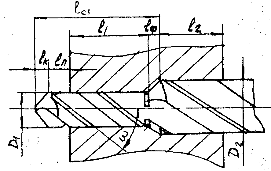 Длина передней направляющей части выбирается в зависимости от отношения длины протягивания к диаметру протяжки.