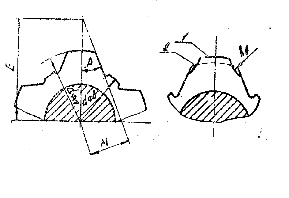 Ширина режущих выступов b>6> между выкружками, радиус выкружек R>в> определяется графически. При этом глубина выкружек должна быть не менее 3S>zч>.