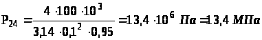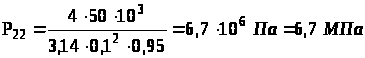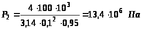 Для принятого диаметра D>2> рабочее давление жидкости Р>2>, МПа у идроцилиндра составит: