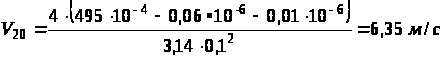 где V>2> - заданная скорость движения поршня м/с; η>0>- объемный КПД гидроцилиндра, который для новых гидроцилиндров с манжетными уплотнениями можно принять η>0>=1.