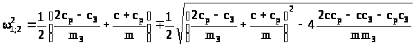Для визначення власних частот складаємо систему диференціальних рівнянь та, прирівнявши нулю визначник матриці, одержаної з цієї системи, отримаємо частотне рівняння. Розв'язуючи це рівняння відносно w2, отримаємо: