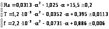 Залежності точності отворів та шорсткості поверхонь від геометричних параметрів різальної частини свердла з рухомими лезовими елементами описуються аналітично регресійними рівняннями. Ці залежності для різних кутів заточування різальної частини свердла становлять: