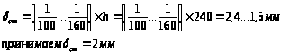 Толщина верхнего и нижнего пояса: