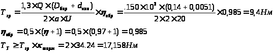 Требуемый момент тормоза: