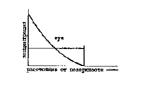 В результате диффузии на поверхности металла образуется максимальная концентрация дифузирующего элемента, которая понижается по мере удаления от поверхности (рис 1).