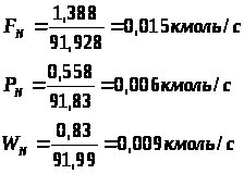 F>N>, P>N>, W>N>─ мольные расходы, кмоль/с.