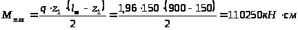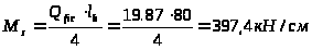 Принимая сварные швы Ш1 за опоры, препятствующие смещению траверсы под действием отпора бетона фундаментов в виде двухконсольной шарнирно опертой балки.