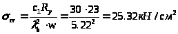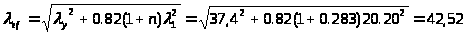 Уточняем гибкость стержня по фактическим геометрическим характеристикам:
