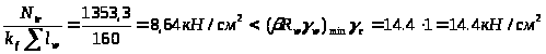 Проверяем прочность соединения, учитывая только вертикальный шов