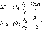 P>1> и P>2> - перепады давлений в трубопроводах l>1> и l>2>, МПа;