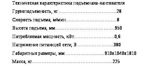 Подъемник-кантователь ТБ-73М предназначен для механизации подъема и установки холодильников в положение, удобное для ремонтных работ на предприятиях бытового обслуживания. С целью исключения возможности холодильника подъемник-кантователь (рис. 3 в Приложении Б) оснащен надежным захватом и улавливающим устройством, удерживающим подвижную систему при обрыве каната.