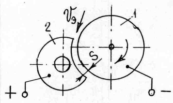 При разрезании заготовок используется профилированный инструмент (вращающийся диск) или непрофилированный - проволока. [Схема разрезания профилированным инструментом показана на рисунке 4]При этой схеме зазор между инструментом-электродом и заготовкой должен быть постоянным.