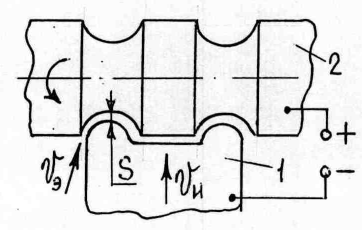 По этой схеме получают местные облегчения в деталях, отверстия в листовых материалах, наносят информацию (порядковые номера, шифры изделий и др.), удаляют заусенцы. [Схема обработки с неподвижными электродами показана на рисунке 1]