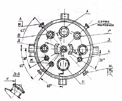 Рисунок 3 Расположение штуцеров на корпусе с эллиптической крышкой