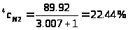 Допускаємо , що на вході в колону співвідношення водню та азоту відповідає стехиометричному , а з урахуванням дещо більших втрат водню порівняно з азотом – 3.007 : 1. Таким чином , концентрація азоту: