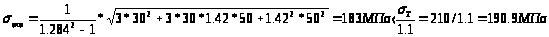 приймаємо 20мм. Допустимий зовнішній тиск визначаємо за формулою: p>H>=2σ(s-c)/(D+s-c) (4.23) p>H>=2*130*(0.02-0.0008)/(0.8+0.02-0.0008)=6.34 МПа