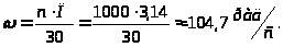Находим угловую скорость вращения вала по формуле 2.6 /4/: