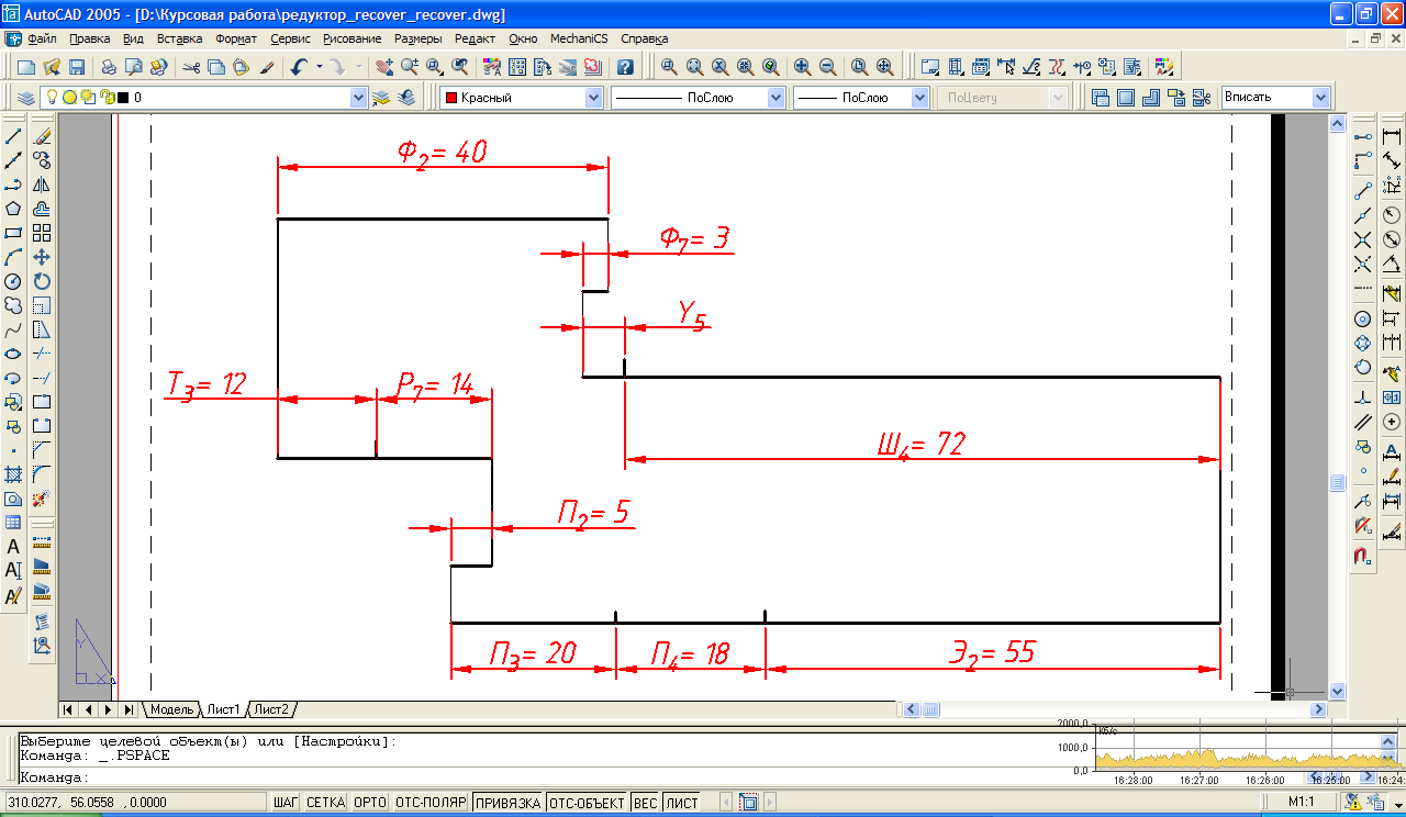 Назначим отклонения звеньев Т>3> , Р>7> , П>3 >, Э>2> в минус т.к. они являются охватываемыми, а для звеньев П>2>, Ф>2>, П>4>, Ф>7> , в плюс охватываемые. Допуск на замыкающее звено "плюс-минус" следовательно допуск на звено Ш>4 >рассчитаем. Рассчитаем середины полей допусков.