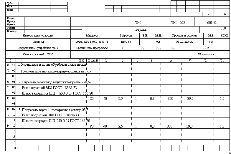 Так как стоимость заготовки выполненной на ГКМ превышает стоимость заготовки выполненной из проката, то мы выбираем метод получения заготовки прокат.