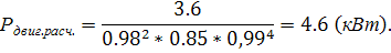 Расчет требуемой мощности электродвигателя производим по формуле: