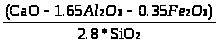 СаО = СН(2,8 * SiO>2>+ 1,65 * А1>2>O>3> + 0,7 Fе>2>O>3>).