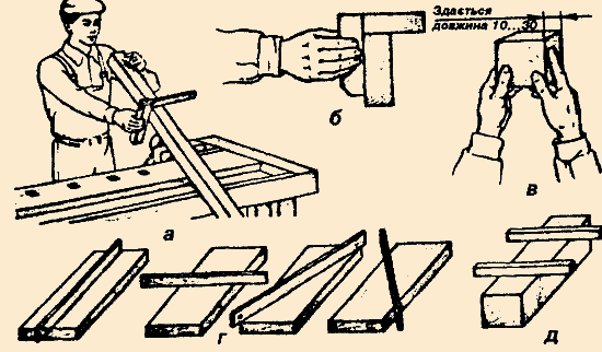 Найбільш просте і надійне з'єднання окремих елементів конструкції - вставний шип, що є обточеним дерев'яним циліндриком діаметром 8-10 мм, заввишки 30-35 мм. Своїми кінцями шип вставляється в отвори, висвердлені в деталях.