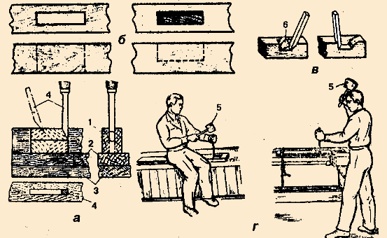 г) інструменти для стругання: шерхебель (для первинного грубого стругання); рубанок (для зняття тонкої, рівної стружки), зензубель (для отборки чвертей; шпунтубель (для отборки шпунтов - низів - на кромках і пластях деталі.