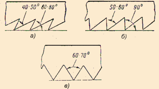 • рубанки по кісті, рогу і черепасі - 70-75 °;